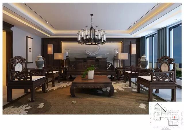 新中式风格是以中国传统古典文化作为背景的,营造的是极富中国浪漫情调的生活空间,红木、青花瓷、紫砂茶壶以及一些红木工艺品等都体现了浓郁的东方之美。