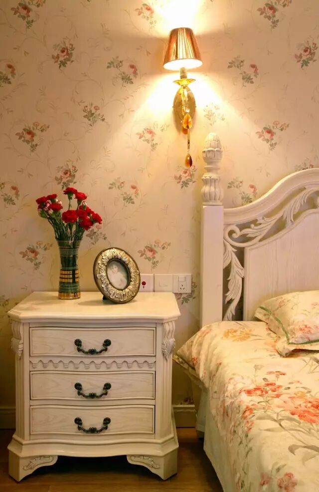 碎花可以有,蕾丝也可以有,但切忌大红大紫这样强烈的色彩,很容易变得十分俗气。房间最好是浅色调,如果面积不大,壁纸尽量不要选择过大的图案。
