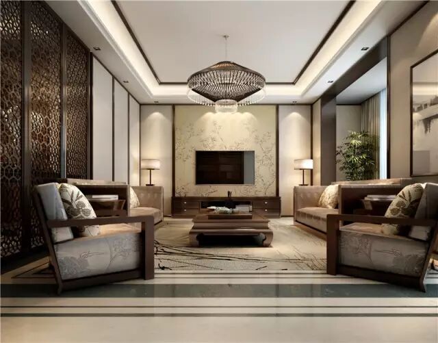 中式的屏风或窗棂、中式木门、工艺隔断、简约化的中式“博古架”,通过这种新的分隔方式,单元式住宅可以展现出中式家居的层次之美。